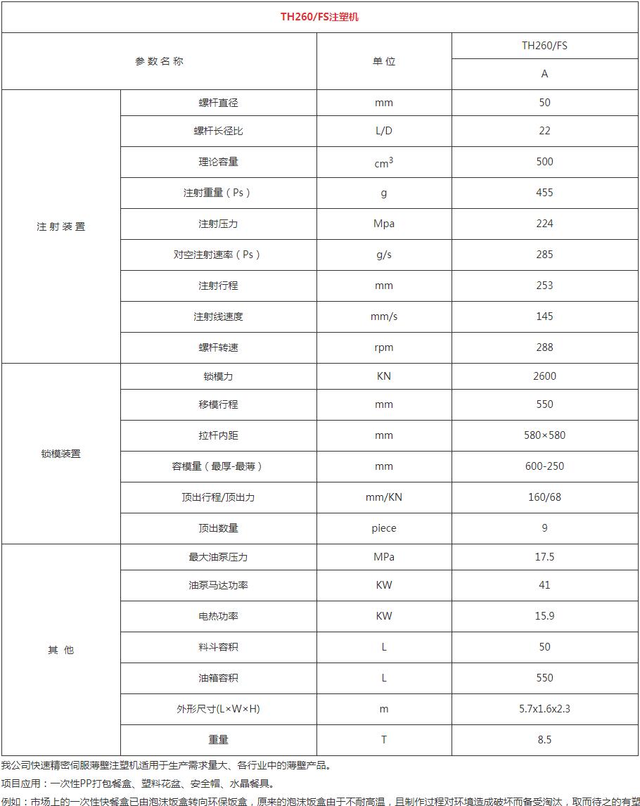 我公司薄壁系列专用注塑机可用于生产打包餐盒、塑料刀叉勺、塑料花盆、安全帽等多行业市场上的热门薄壁系列产品,成型率强,速度快,伺服节能控制,简单易学好操作。